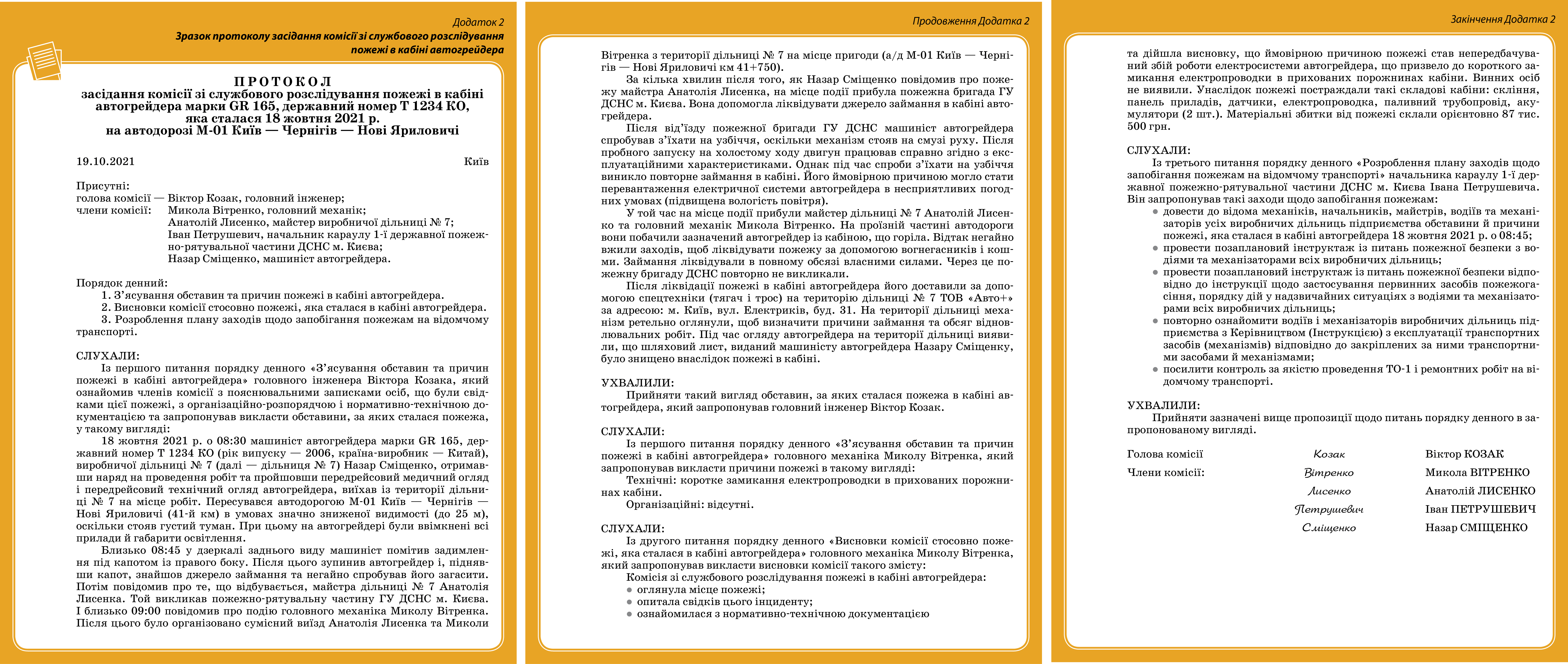 - Протокол засідання комісії зі службового розслідування пожежі в кабіні автогрейдера 33.64 КБ